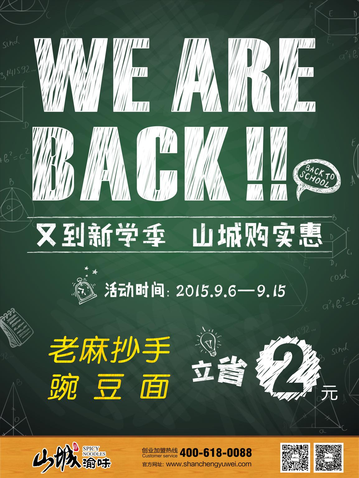 更令人振奮的是重慶美食加盟店山城渝味重慶小面自9月6日起將在全國所有活動門店推出“WE ARE BACK!!”的促銷活動,2款美味的重慶特色小吃將有大優惠: